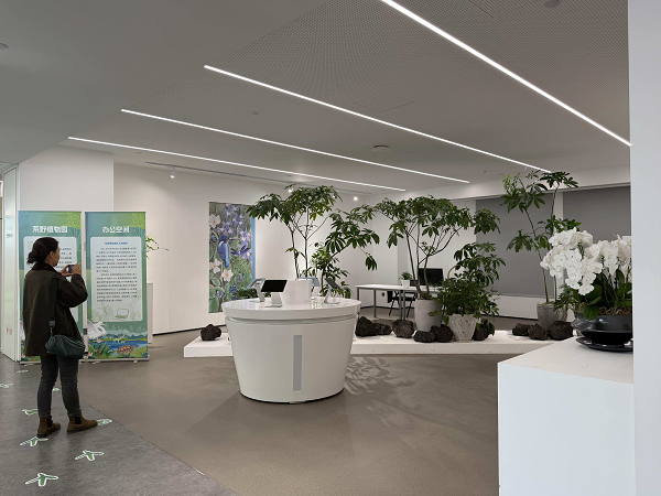 “花园城市·花园疗愈”用鸭脚木、龟背竹、龙舌兰等大叶绿植、花卉装扮出“办公”与“居家”两大生活场景,打造沉浸式体验空间。“绿意办公”区的垂直绿墙、桌面微生态,直观展示植物如何缓解压力、提升专注力;“归栖花园”里的大型观叶植物、舒适家具与芬芳花卉,构筑起让身心松弛的“都市绿洲”。